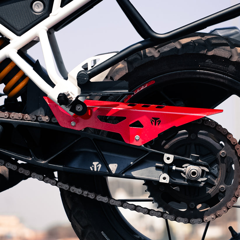 Durable protection with a sleek finish. The Moto Torque Chain Guard for TVS Apache RTX 300 is crafted from premium mild steel, designed to shield the chain from dirt, debris, and minor impacts while maintaining a clean, sporty look. Its striking red powder-coated finish adds a vibrant accent to your motorcycle, combining durability with standout style.